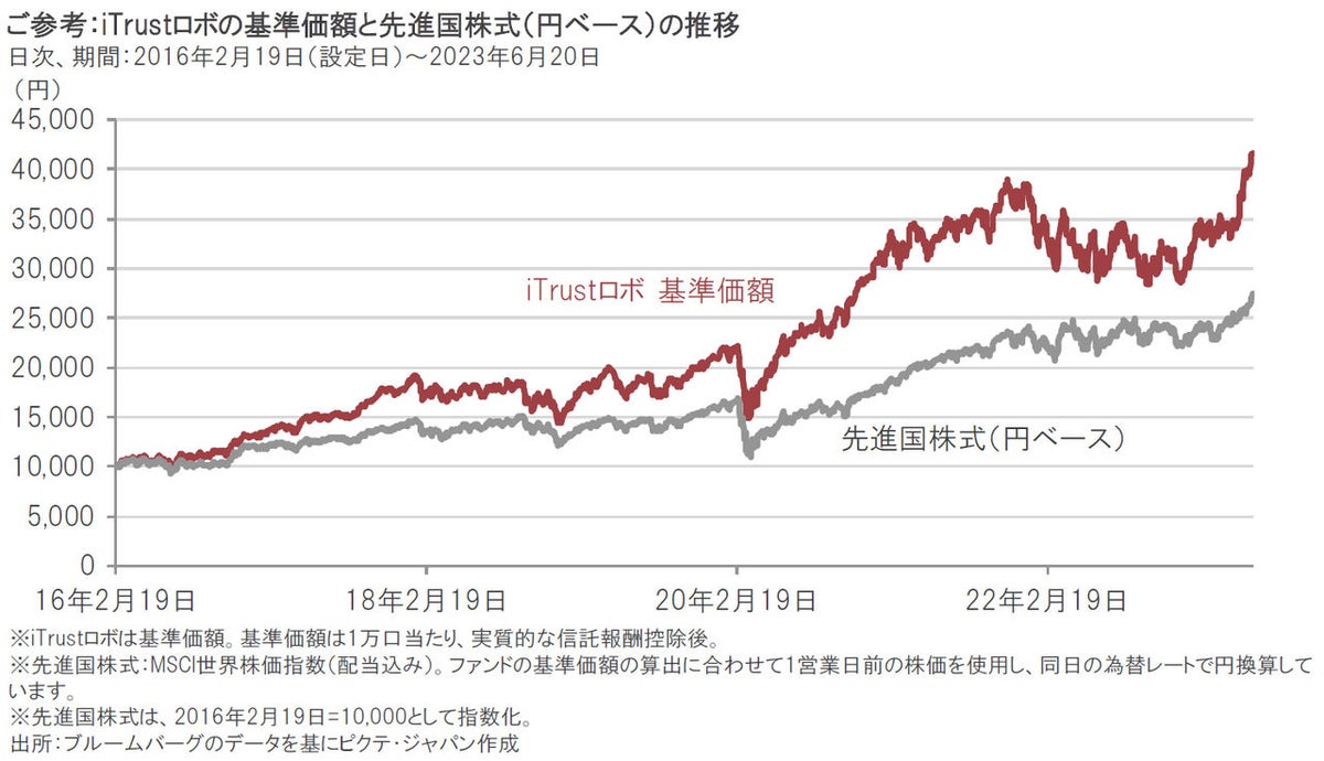- iTrustロボ|2023年年初来でiTrustロボは先進国株式を上回って大きく上昇