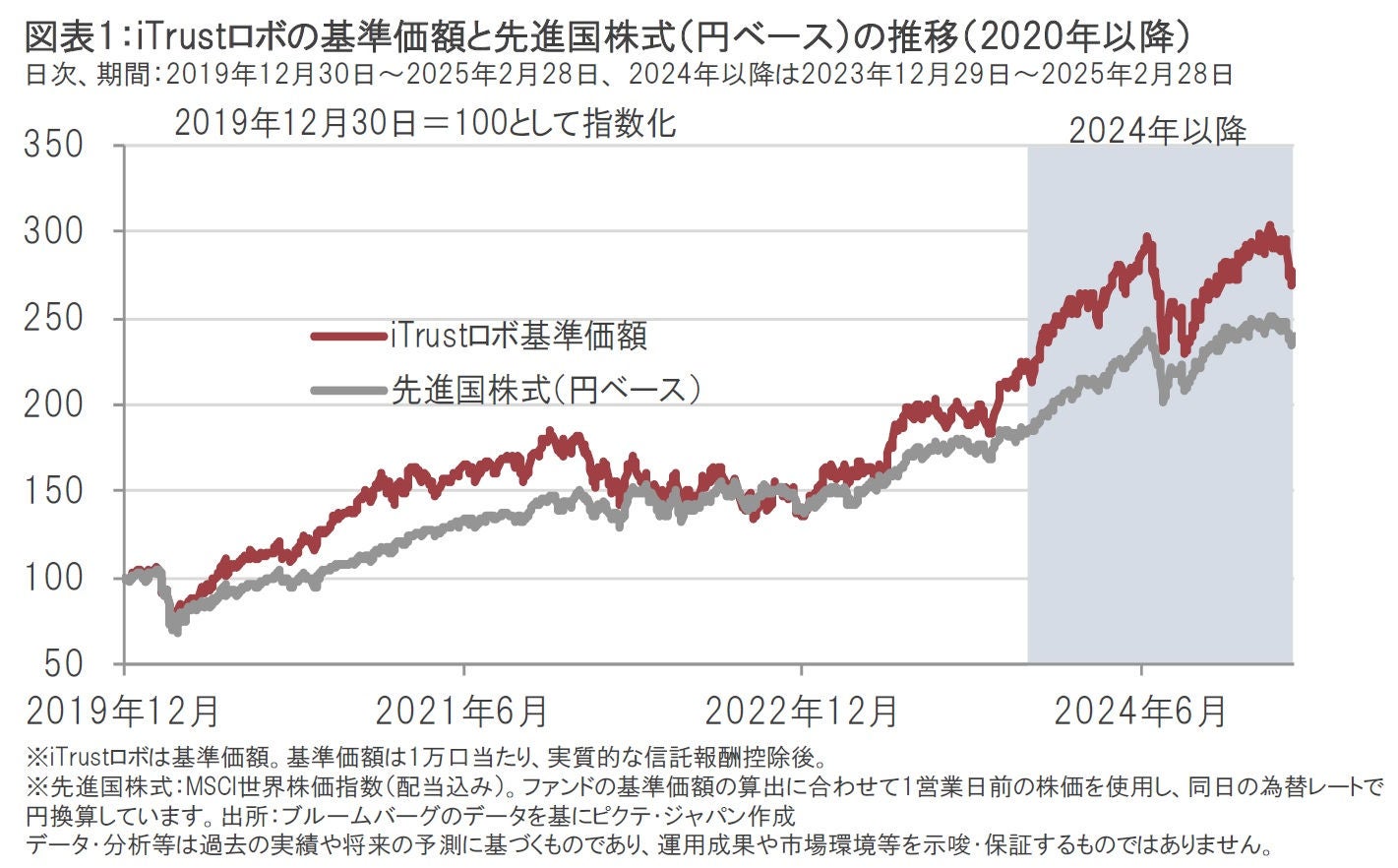 ● 当ファンドの基準価額は、2024年1年間で30.0%上昇した一方、2025年年初来でみると-7.7%下落(2025年2月末時点)
