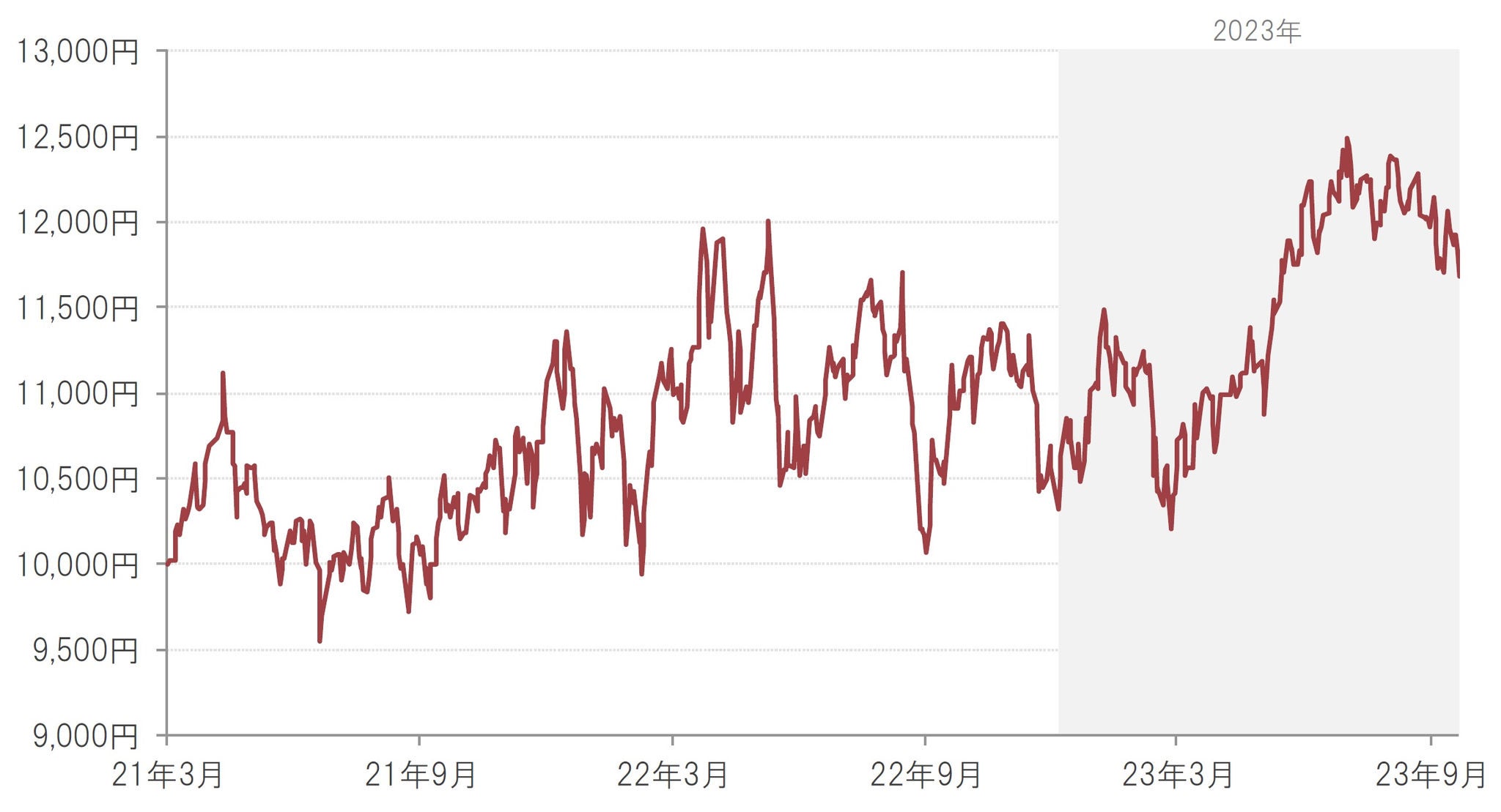 日次、期間:2021年3月31日(当ファンド設定日)~2023年10月20日、グレーの網掛け部分は2023年