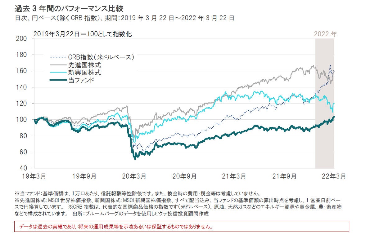 引き続き、米国をはじめとした主要国の金融政策動向や地政学リスクの高まりなどを受けて、投資家がリスクの高い新興国市場から資金を引き揚げる動きを強める懸念は残ります。また、短期的には、資源価格の上昇などが当ファンドの投資国の株式市場にとって追い風となる局面が続く可能性があるとみられますが、その一方で、景気および市場サイクルが次の局面に移行した場合、投資家の注目が別のテーマに移ることも想定されます。こうしたことから今後も短期的にみると、当ファンドの基準価額の値動きは相対的に大きくなる傾向が続く可能性があり、この点は留意が必要です。