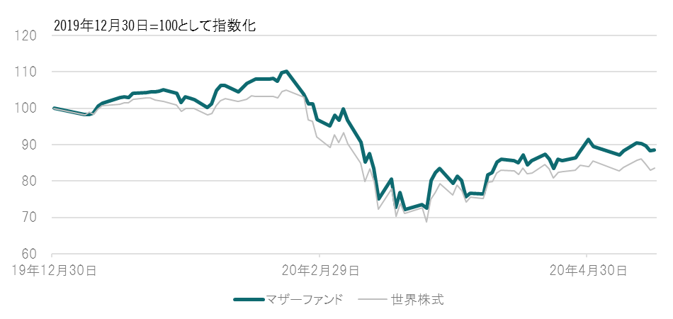 2020年5月15 日時点の基準価額(マザーファンド)は年初来で11%の下落となった一方、世界株式(円換算)は同16%下落しており、iTrustエコイノベーションの下落率は相対的に小幅となりました。