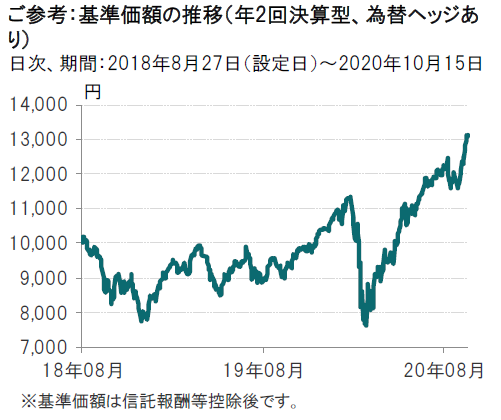 ●投資信託は、値動きのある有価証券等(外貨建資産に投資する場合は、為替変動リスクもあります)に投資いたしますので、基準価額は変動します。したがって、投資者の皆さまの投資元本が保証されているものではなく、基準価額の下落により、損失を被り、投資元本を割り込むことがあります。