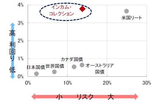 図表4:インカム・コレクションと主な資産のリスク・利回りの関係