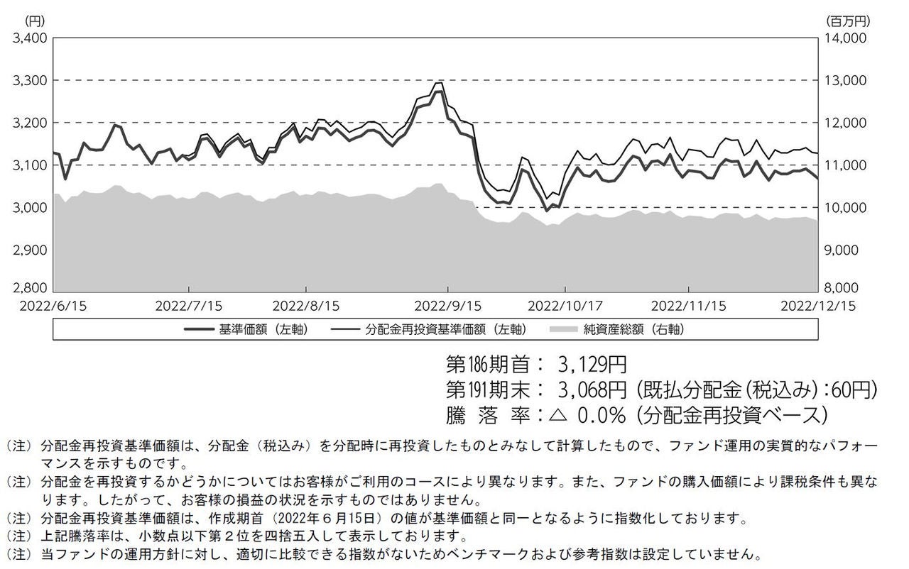 2022年6月15日~2022年12月15日の当ファンドの分配金再投資基準価額は、0.04%の下落となりました。