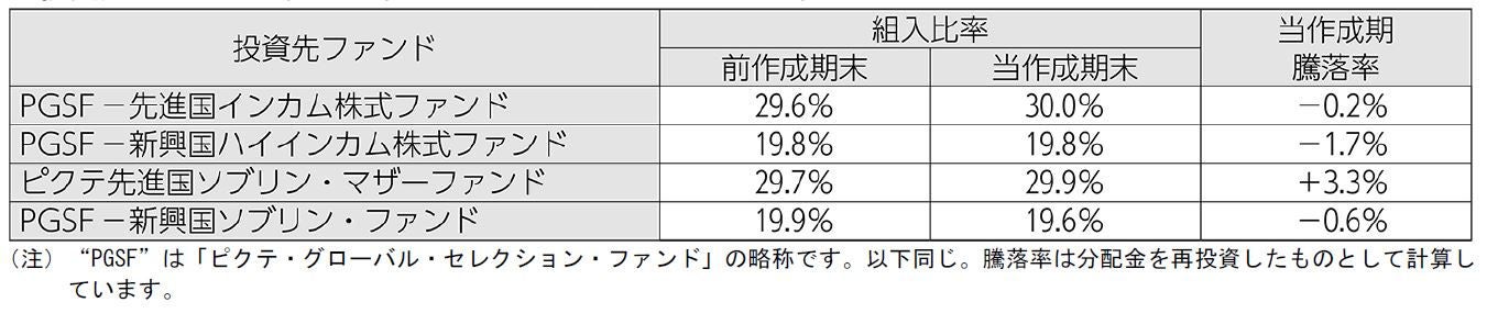 投資信託証券への投資を通じて、日本を含む世界各国の株式およびソブリン債券に投資することにより安定的かつより優れた分配金原資の獲得と信託財産の成長を図ることを目的に運用を行ってまいりました。