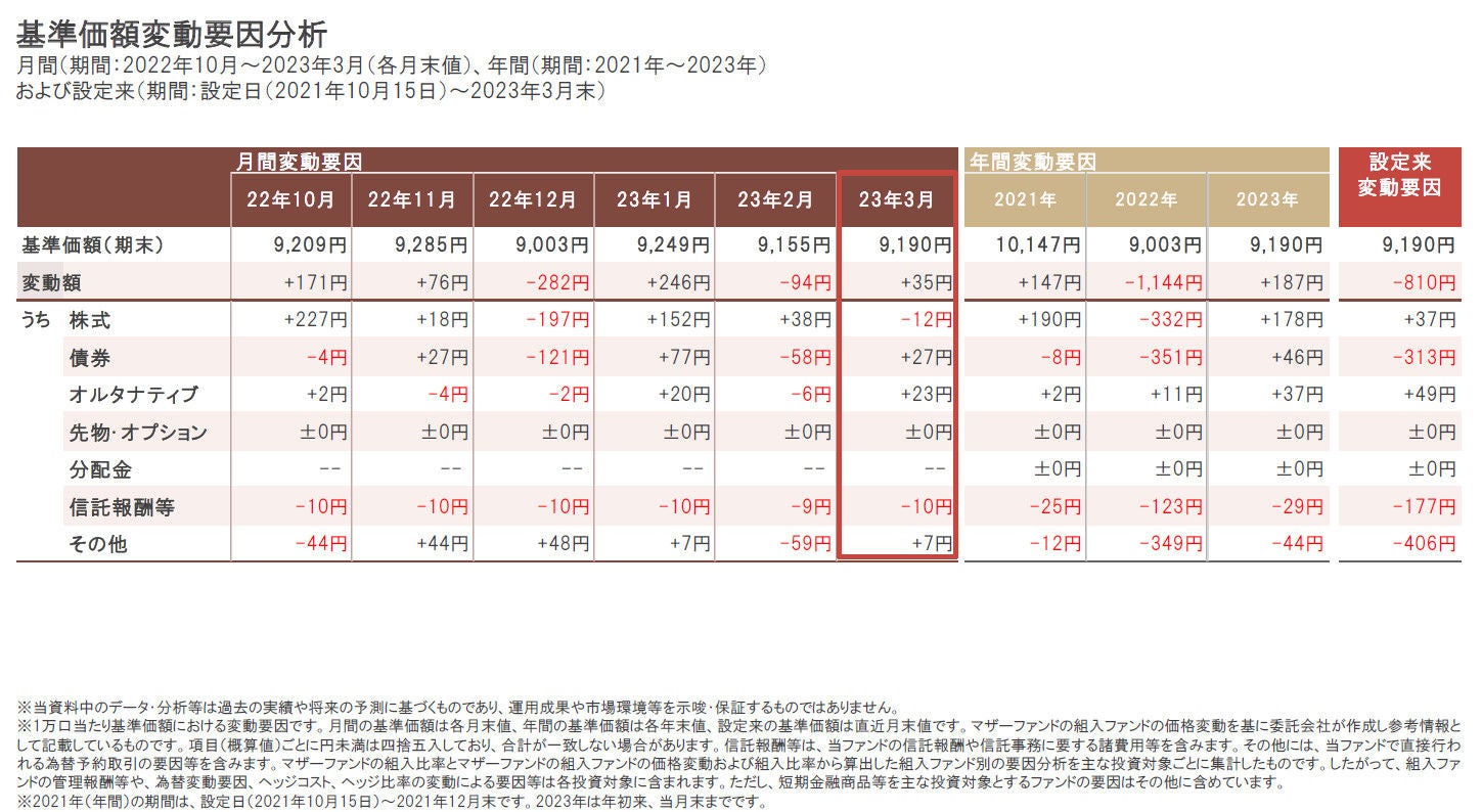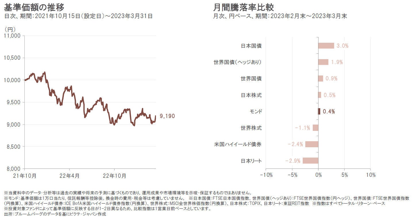当ファンドの2023年3月31日の基準価額は9,190円、前月末比で+35円(+0.4%)の上昇となりました。