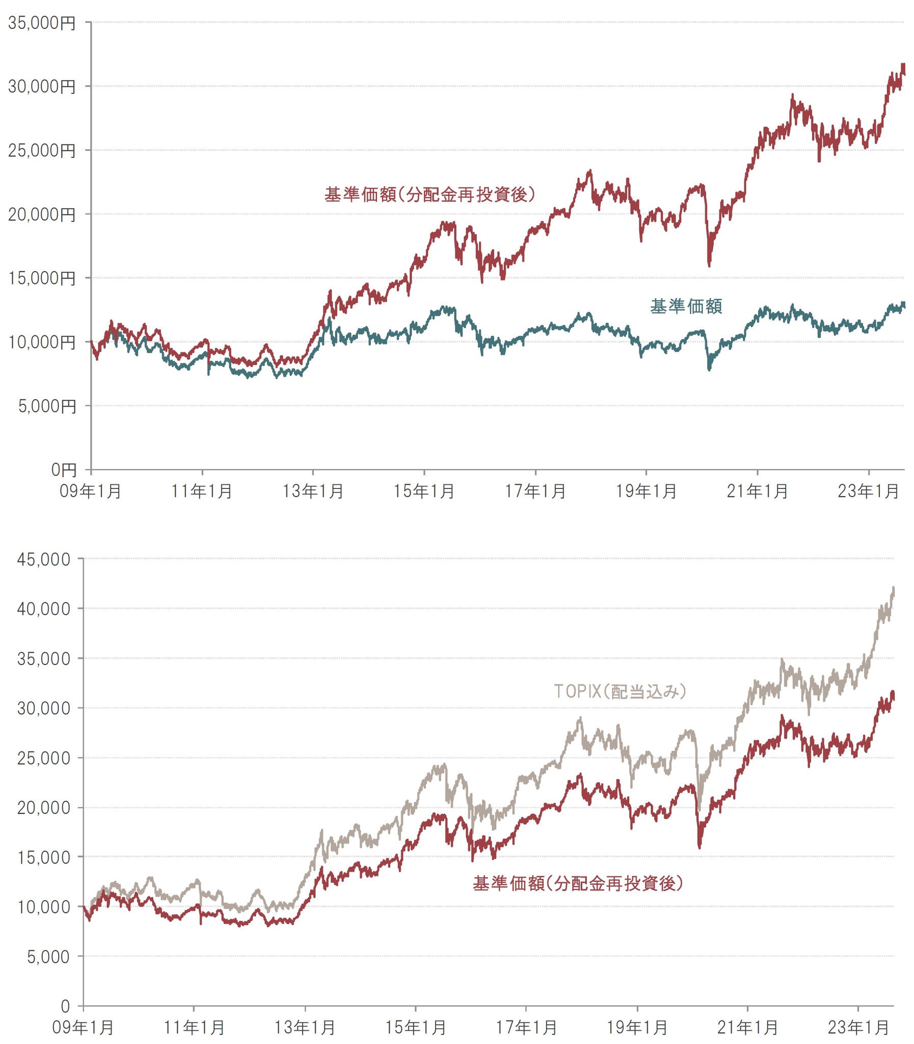 (下図)日次、期間:2009年1月30日(設定日)~2023年9月22日、2009年1月30日=10,000として指数化