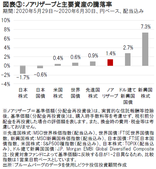 このような状況下、ノアリザーブの基準価額(分配金再投資後)は上昇しました。(図表③参照)