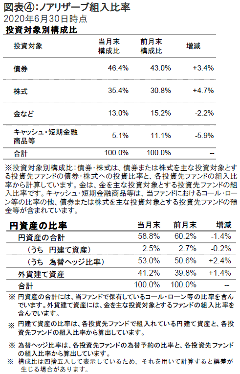 なお、円資産の比率は、キャッシュの比率を引き下げたことなどから前月末より低下し58.8%となりました。