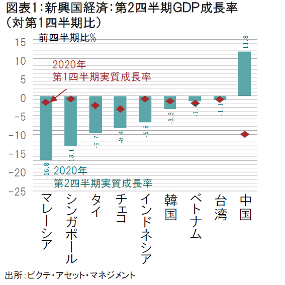 新興国は、輸出セクターを中心に、事前予想を上回る強い回復力を示してきました。域内の輸出の伸び率は-5%と、リセッション時の-12%から改善し、先進国の-14%を大きく上回っています。