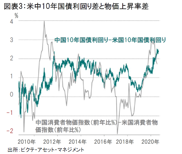 米中の国債利回り格差は、経済のファンダメンタルズの観点からすると、一段と魅力的です(図表3参照)。
