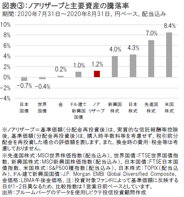 このような状況下、ノアリザーブの基準価額(分配金再投資後)は上昇しました。(図表③参照)
