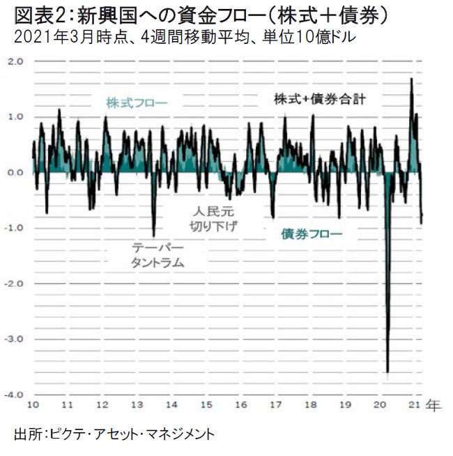 また、先進国の中央銀行による流動性供給の縮小から、どのような影響を新興国株式市場が受けるかどうかは定かではありませんが、(FRBが資産購入の縮小計画に言及したことが市場の急落をもたらした)2013年のテーパー・タントラムに先立つ時期と比べれば、新興国の経常収支は、総じて、改善されていると考えています。ただし、新興国の株式市場から、資金が流出していることにも留意する必要があると考えます。