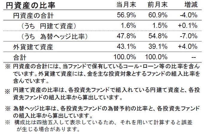 ワクチンの接種は広がっているものの新型コロナウイルスの感染動向などについては依然として先行きに不透明感があります。また、マクロ経済が堅調に推移する中、米国金利などの動向が株式や債券、金、為替に大きな影響を与える可能性があります。市場の動きに配慮しつつ、引き続きバランスの取れたファンド運営を心がける方針です。