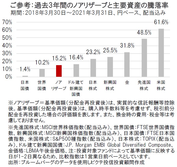 ノアリザーブと主要資産の騰落率