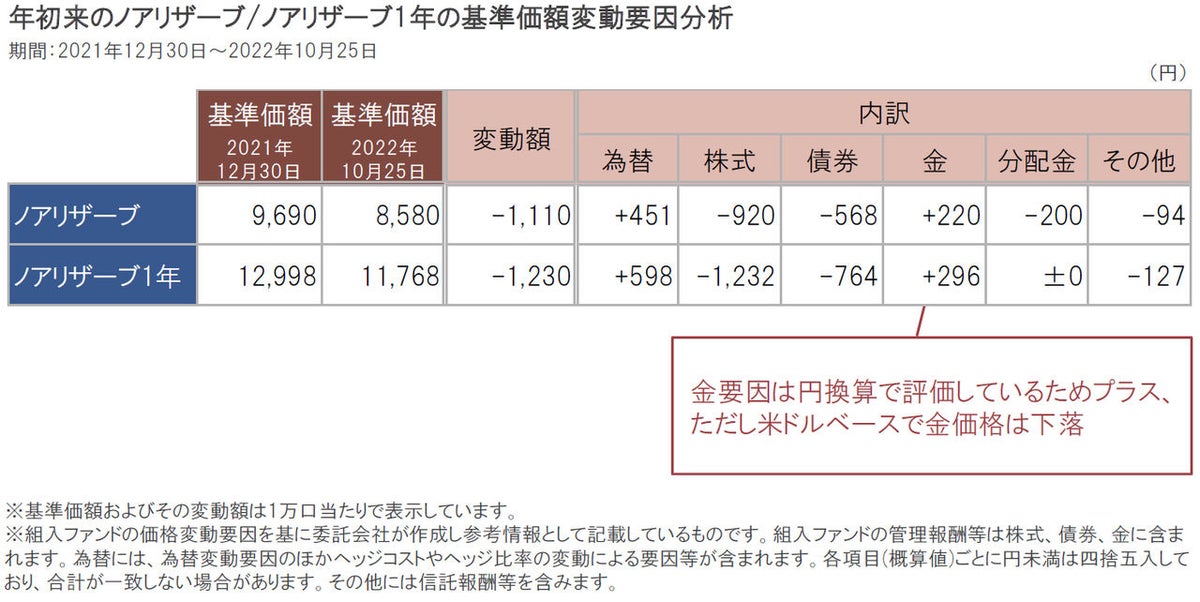 - ノアリザーブ/ノアリザーブ1年|分散投資効果が発揮されにくい局面となった2022年年初来の基準価額動向