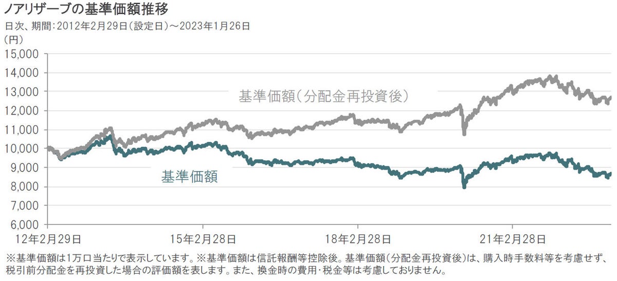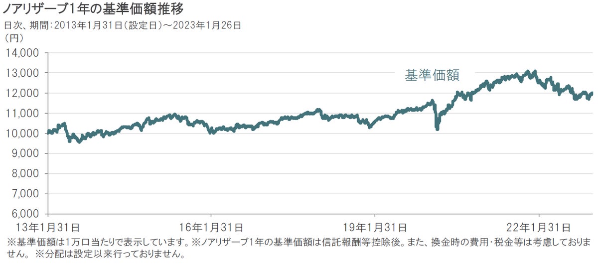 なお、2023年のノアリザーブおよびノアリザーブ1年の年初来(2023年1月26日時点)騰落率はともに+2.6%となっています。