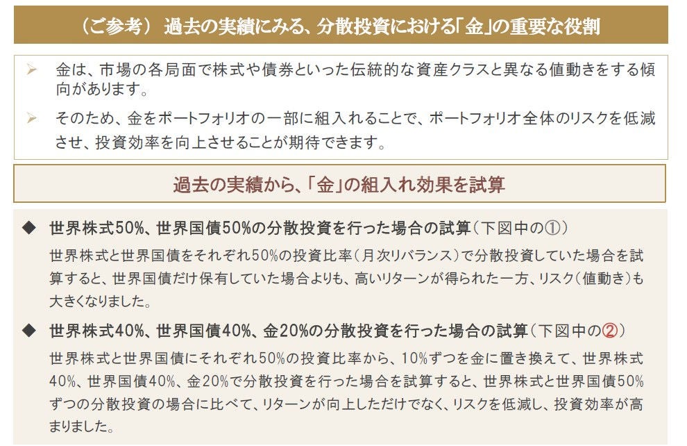 ※5頁目の「(ご参考) 過去の実績にみる、分散投資における「金」の重要な役割」も併せてご参照ください。