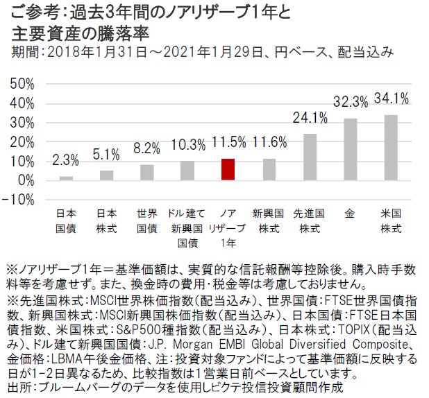 ノアリザーブ1年と主要資産の騰落率