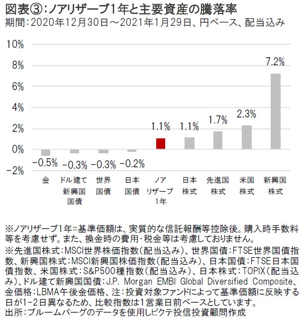 このような状況下、ノアリザーブ1年の基準価額は上昇しました。(図表③参照)
