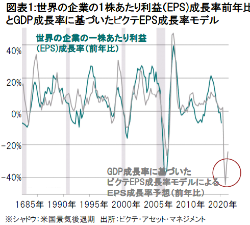 ピクテのモデルは、今年の1株あたりの利益(EPS)と配当が40%前後落ち込むことを予測しています(図表1参照)。2008~2009年のグローバル金融危機時のEPSはピクテの今年の予想と同程度の落ち込みとなりましたが、(世界が対応に苦慮する)足元のリセッションは、当時のリセッションの3倍~4倍に達するのではないかと懸念されます。