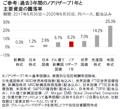 ノアリザーブ1年と主要資産の騰落率