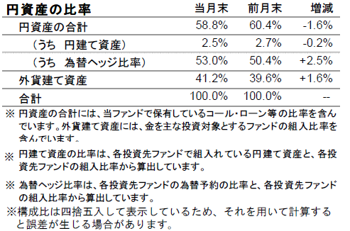 なお、円資産の比率は、キャッシュの比率を引き下げたことなどから前月末より低下し58.8%となりました。