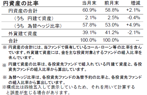 なお、円資産の比率は、前月末より上昇し60.9%となりました。