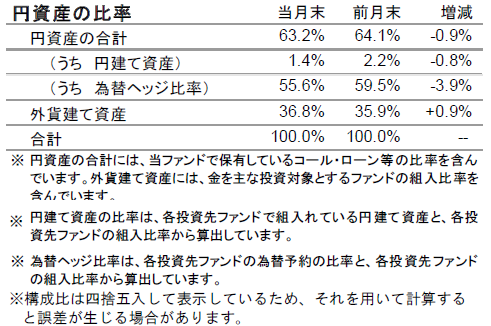 なお、円資産の比率は、前月末より低下し63.2%となりました。