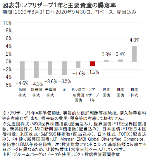このような状況下、ノアリザーブ1年の基準価額は下落しました。(図表③参照)