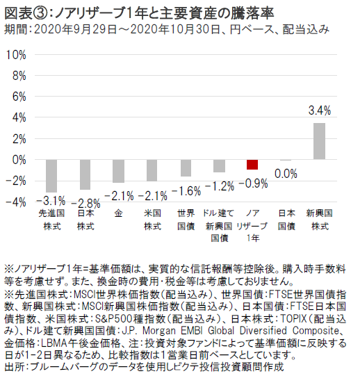 このような状況下、ノアリザーブ1年の基準価額も下落しました。(図表③参照)