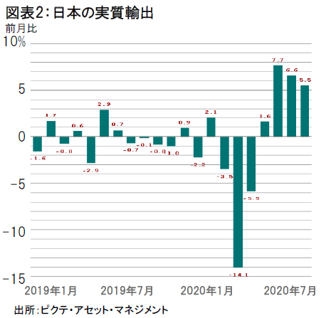 中国の製造業PMIは強い輸出需要を受けてコロナ前の水準をほぼ回復しています。また、小売販売についても、その他分野と比較して回復が遅れているものの、個人消費に改善余地が十分残されていると考えます。また、輸出比率の高い日本経済は、アジア経済回復の恩恵を特に享受する公算が高く、実際に4ヵ月連続で実質輸出が拡大しています。また、魅力的なバリュエーション水準や、北アジア各国と同様、欧州や米国と比べて新型コロナウイルス感染の抑え込みに成功していることも好材料だと考えます。