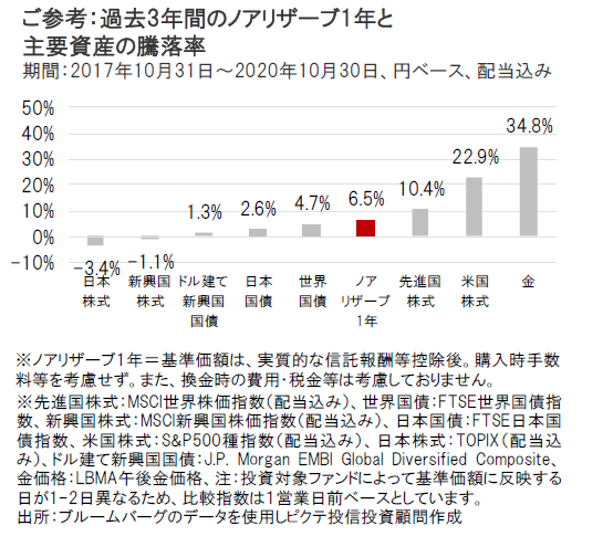 ノアリザーブ1年と主要資産の騰落率