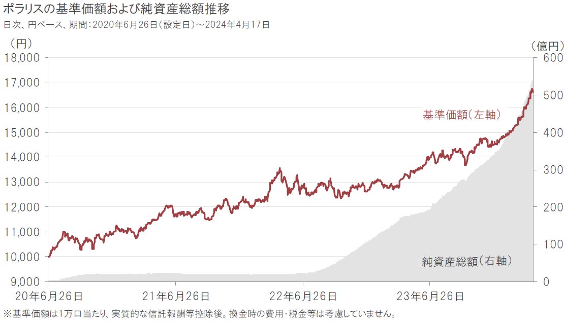 市場環境に応じて、魅力的なリスクプレミアム注1が期待できる資産を選択し投資するポラリスは、設定来、金を積極的に組入れた運用を行ってきました。2024年3月末現在、ポラリスは金を44.5%注2組入れています。