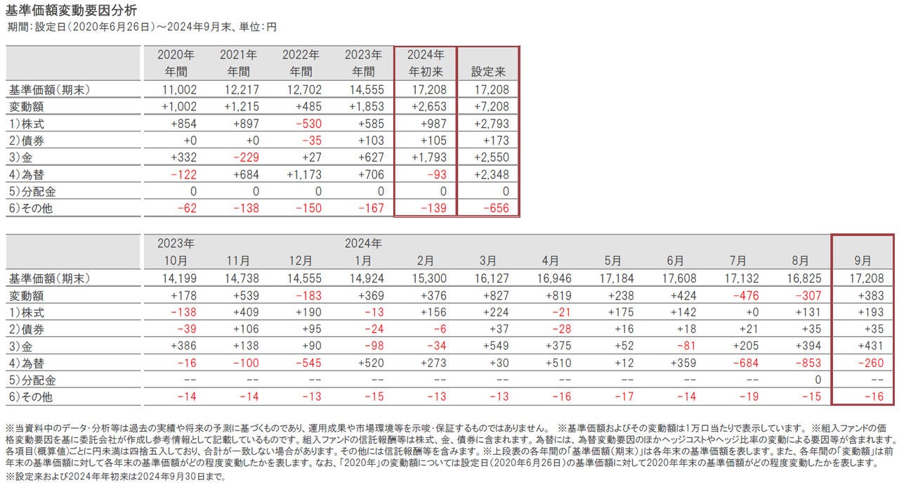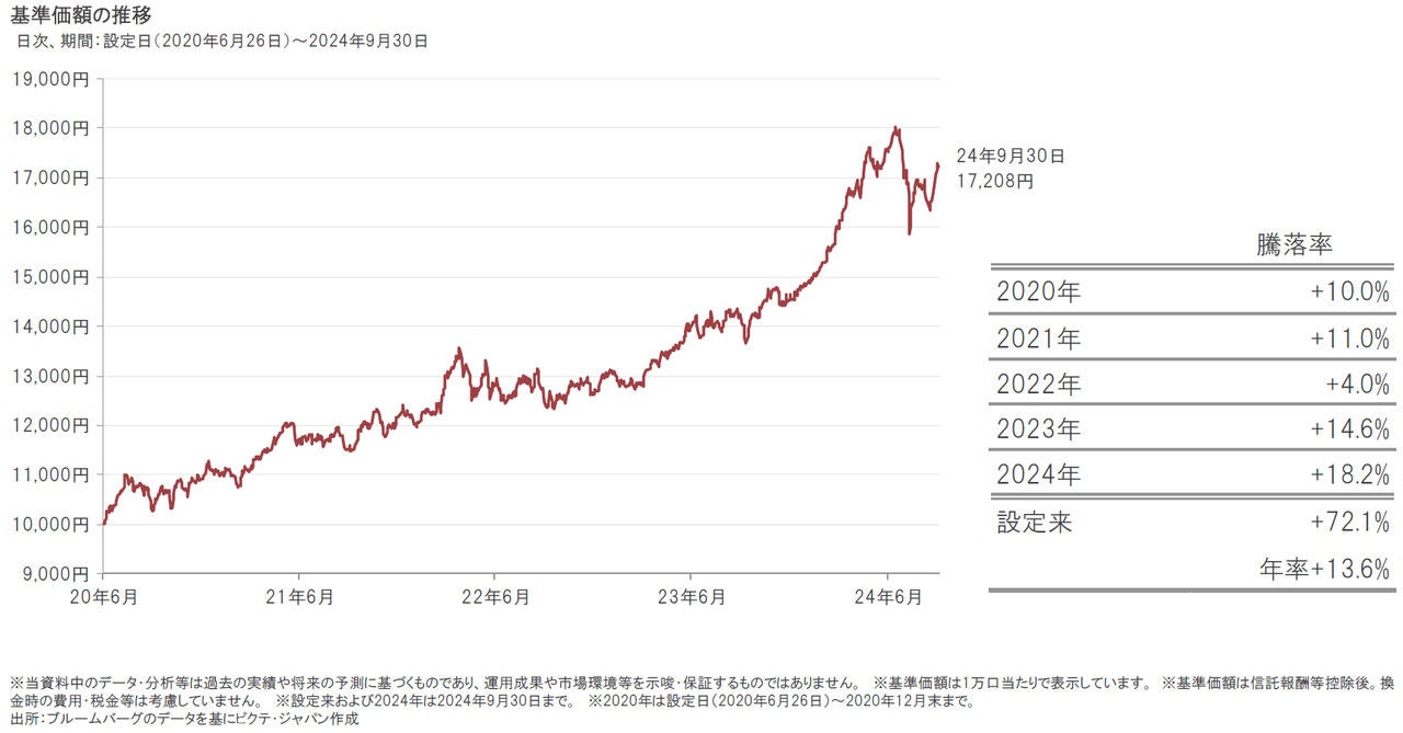2024年9月30日のポラリスの基準価額は17,208円となり、設定来で+72.1%(年率+13.6%)、年初来で+18.2%上昇しています。