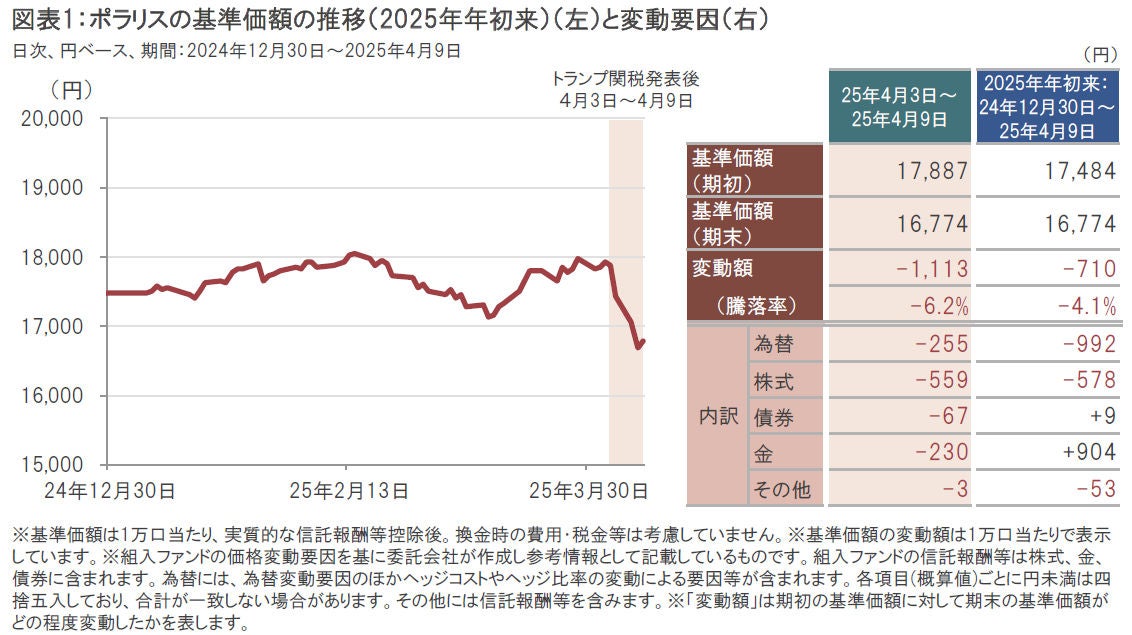 このような環境下、ポラリスの基準価額についても、2025年4月3日から4月9日の間に-6.2%の下落となりました。