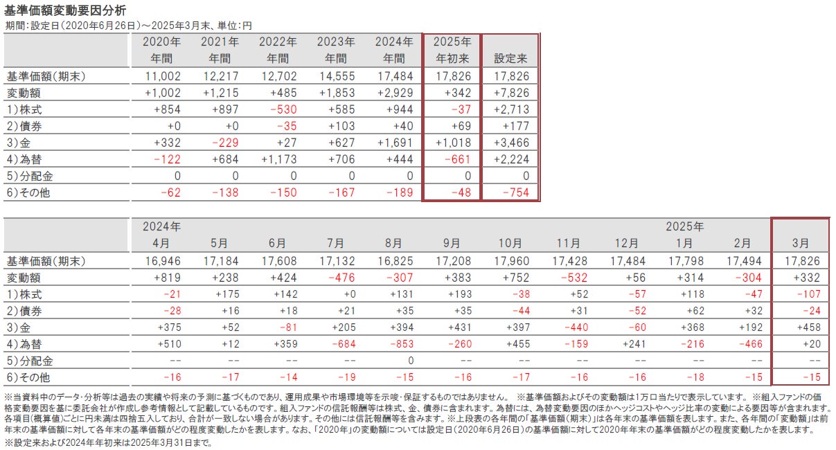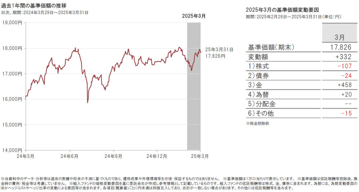 2025年3月31日のポラリスの基準価額は、前月末比332円上昇(+1.9%)の17,826円となりました。
