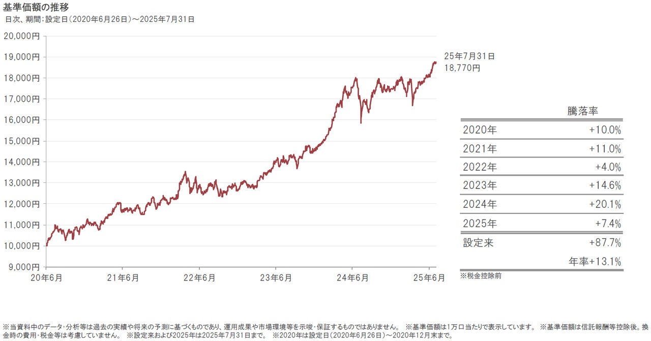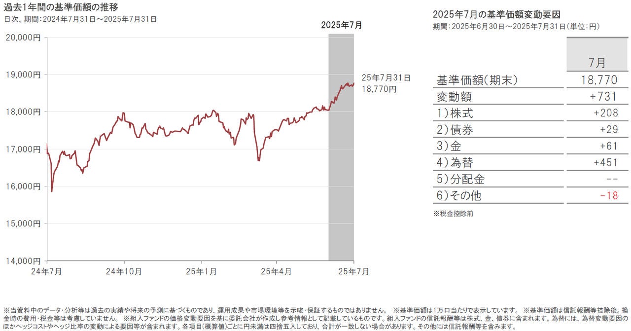 2025年7月31日のポラリスの基準価額は、前月末比731円上昇(+4.1%)の18,770円となりました。