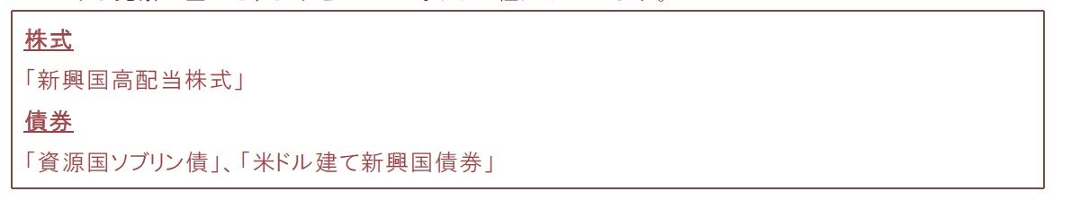 これまで積極的な金融引き締めを行ってきた新興国は、先進国・地域と比較して早期に金融緩和に軸足を移そうとしています。このため、新興国の景気回復ペースは、先進国・地域と比較して相対的に早いとみていますが、新興国資産全般については、確信度が高まった場合には引き上げを検討するものの、現時点では慎重なスタンスを維持しています。