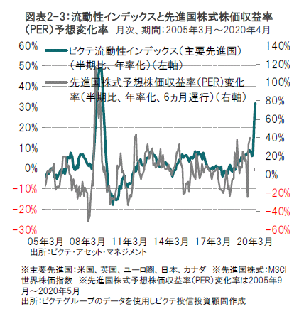 FRBによる今年の流動性供給総額は2.4兆ドルを上回り、年末までに4兆ドルを超えることが予想される財政赤字の60%程度が賄われると考えます。 (図表3参照)