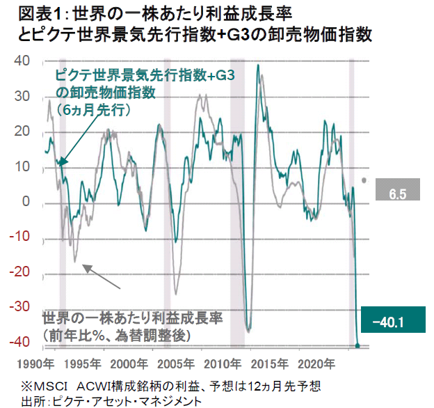 各国政府と世界の中央銀行は未曾有の規模の景気対策を打ち出し、新型コロナウイルスの大流行がもたらした不況下においてグローバル経済を支えようとしています。とはいえ、祝宴を挙げるのは時期尚早です。感染者は世界各地で増え続け、企業収益は急速に悪化しておりピクテの先行指標はさらなる悪化を示唆しています(図表1参照)。金融市場の上昇局面がこの先長期にわたって続くとは考えられません。従って、株式、債券、キャッシュのいずれについても、ニュートラルを維持します。