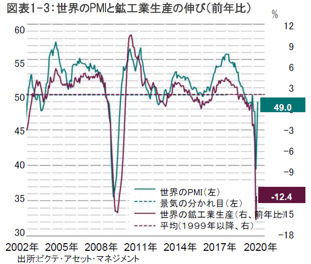 世界経済のこれまでの回復は、想定よりも良好だとはいえ、個人消費の改善にけん引されるものでした。一方、工業生産は低位に留まり、在庫が減少しています。今後は、生産活動の拡大が景気回復の次の局面を支える中、在庫の安定とその後の緩やかな増加が予想されます(図表1-3参照) 。