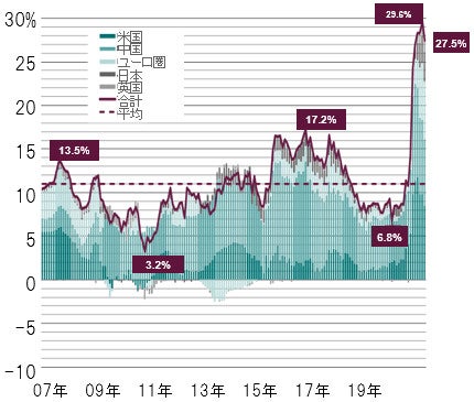ピクテの景気循環指標は、大方の経済指標が2019年12月の水準を上回る等、中国経済の堅調さを強く示唆しています。中国政府の徹底的なコロナ対策と巨額の景気刺激策の効果がこれらの指標に反映されていると考えています。事実、中国において、国内経済が極めて順調であることから、中国は景気対策の一部を終了し始めています(流動性セクションにて後述)。また、堅調な経済が、広い地域、とりわけ、日本経済に恩恵を与えています。