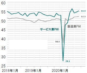 図表3:ユーロ圏サービス及び製造業購買担当者景気指数(PMI)