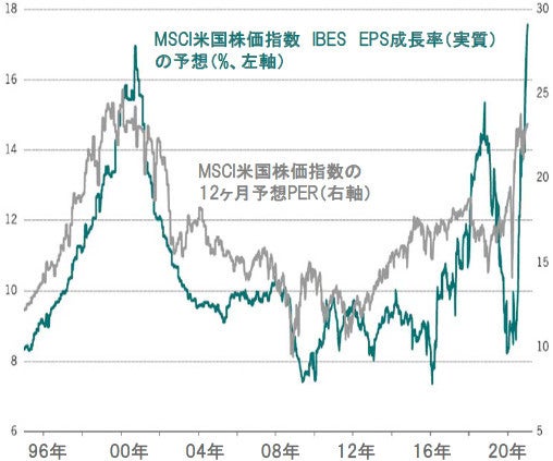 図表3:米国株式のEPS予想及び12ヶ月予想PER