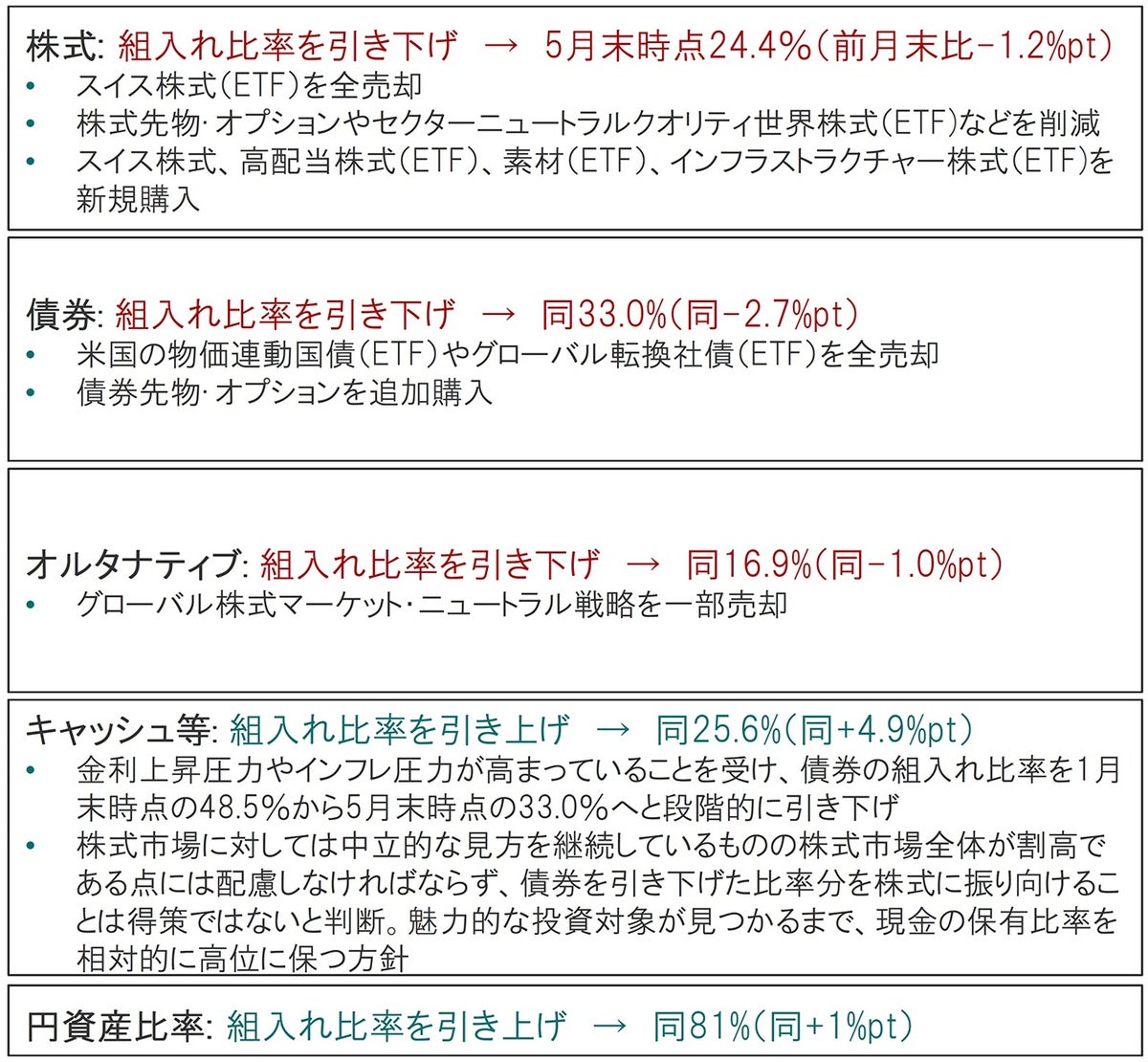 こうした認識に基づき、リスク資産に対してやや強気である現状のスタンスを継続しつつ、引き続き米国の物価や金融政策の動向を注視していく方針です。