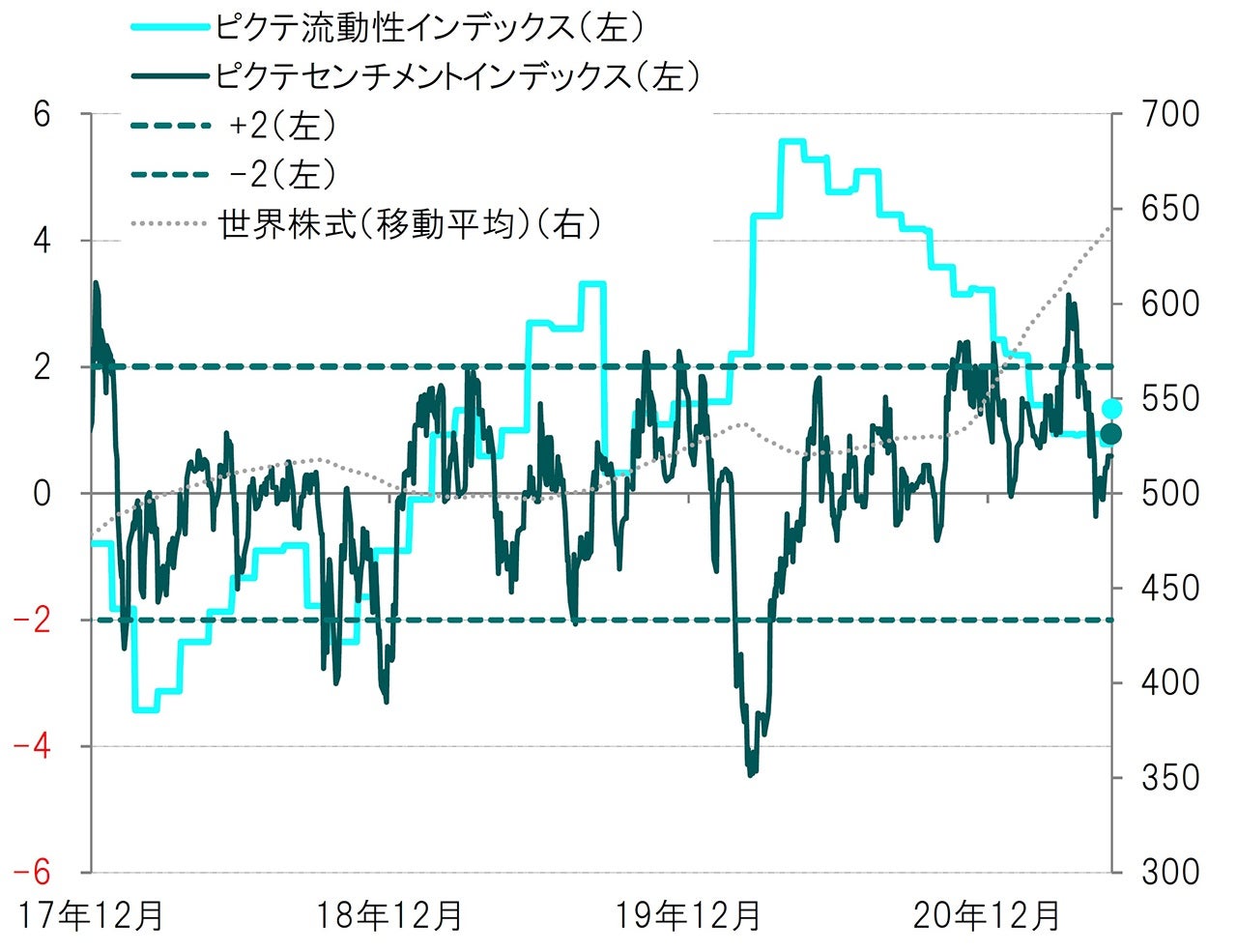 ※ピクテ流動性、センチメントインデックスは流動性供給量や世界株式の予想PER等を使用し、ピクテ独自に算出