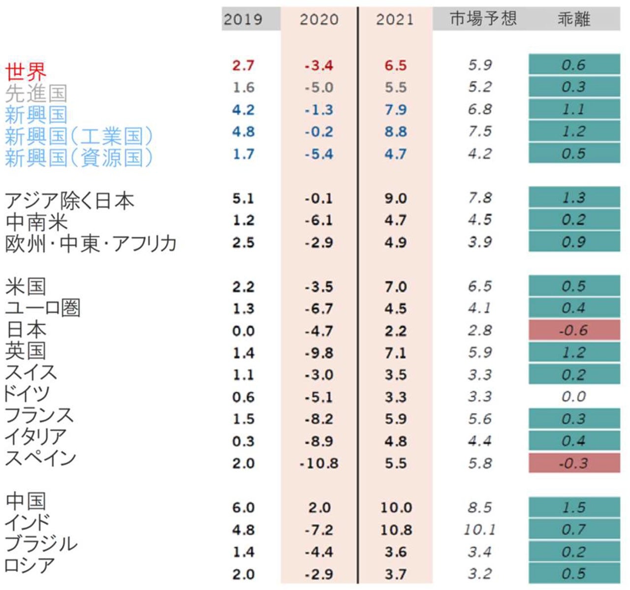 図表 3:主要国・地域のGDP成長率実績とピクテ予想