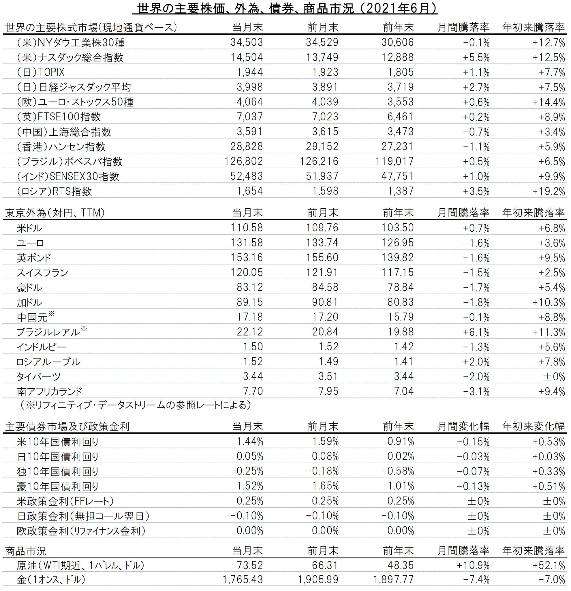 ワクチン接種の進展に伴う経済再開への動きから、世界経済には力強さが見られます。しかし、米国では米連邦準備制度理事会(FRB)が夏以降に量的金融緩和の縮小の議論を開始すると見られ、景気拡大ペースは次第に緩やかになっていくものと思われます。