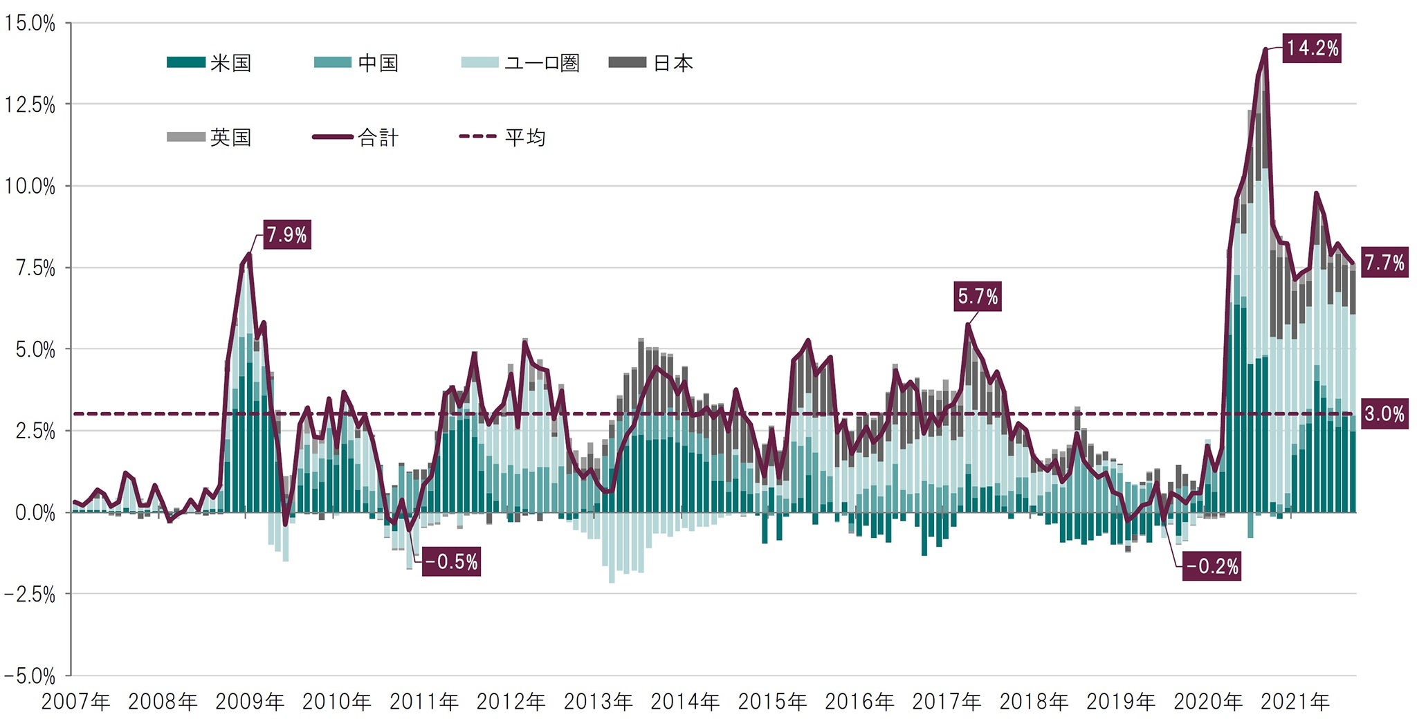 また、2022年の企業の利益成長率についても15%に達すると予想しています。特に、景気回復が道半ばの欧州および日本の企業において、業績がアナリストによる事前予想を上回る公算が大きいと考えています。